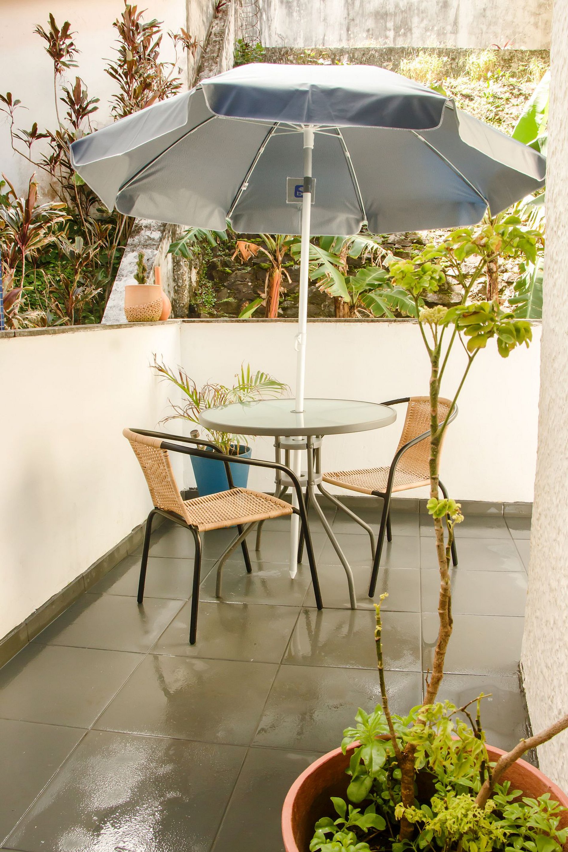 Disponemos de varios espacios exteriores con plantas y el sonido de pájaros, presentes en nuestra calle, conocida por ser silenciosa. Área externa para refrescarse o disfrutar de nuestro agradable café y té de la tarde, acompañado de delicias mineras, traídas directamente del campo de los abuelos de los socios.